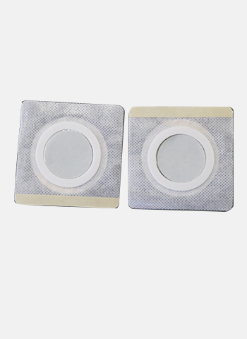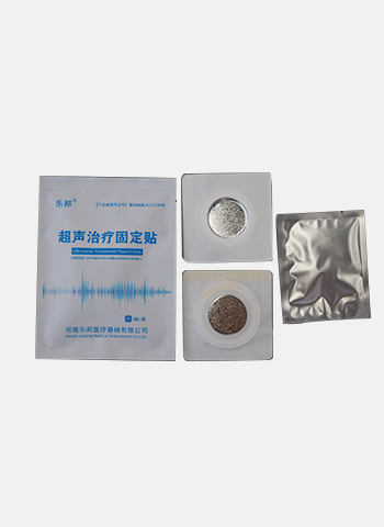 2、 揭去超聲治療固定貼正面保護(hù)紙,將無(wú)紡棉片放置于泡沫棉墊圈內(nèi)加入耦合介質(zhì),將固定貼粘貼于已清潔部位表面;